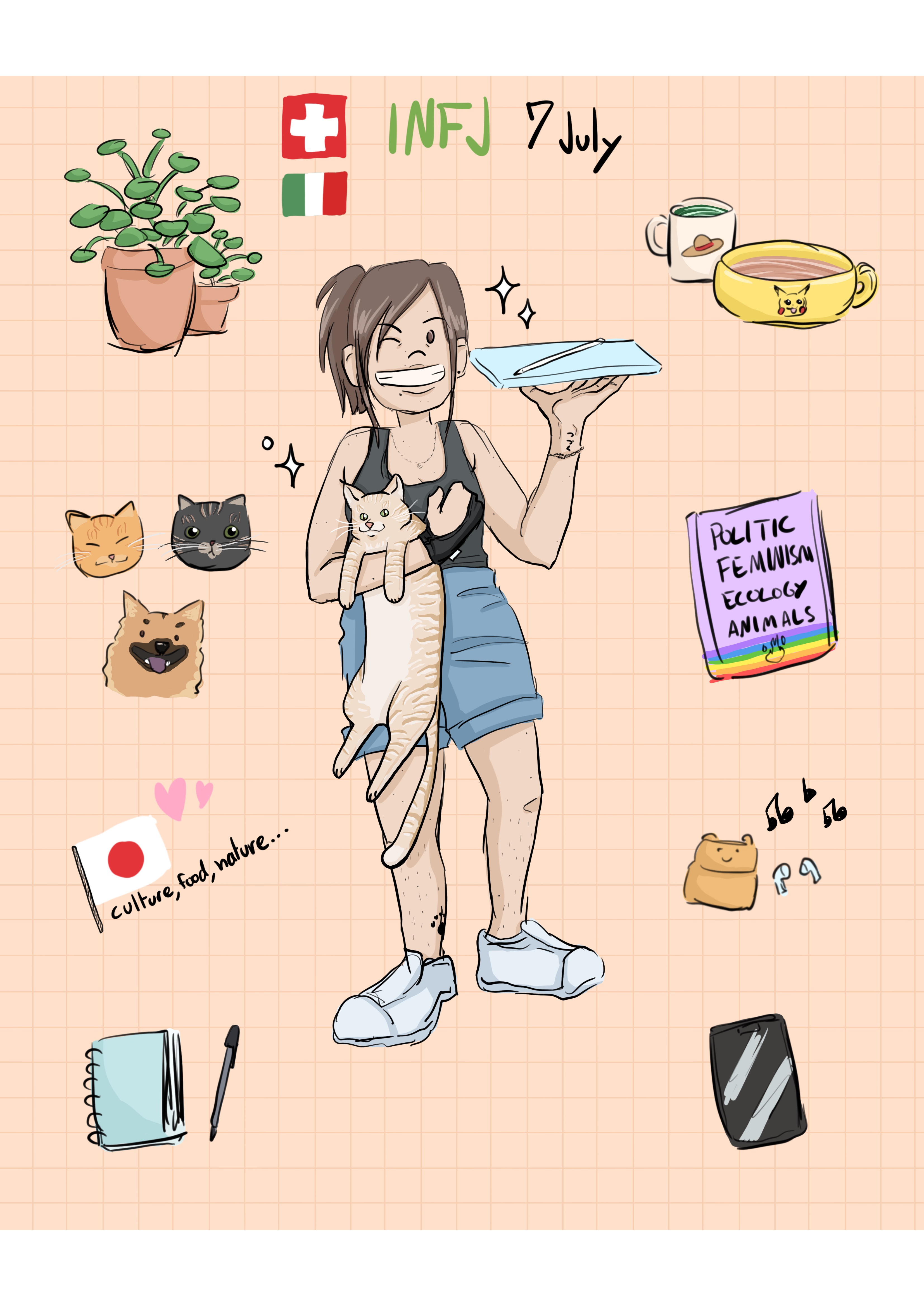 Vous pouvez m’appeler Ju. Je suis une illustratrice freelance vivant à Genève, en Suisse. Je dessine depuis aussi loin que je m’en souvienne et n’ai jamais arrêté. Je travaille également en tant que surveillante scolaire dans une école internationale, ce qui me permet, entre autre, de garder mon anglais à flot!